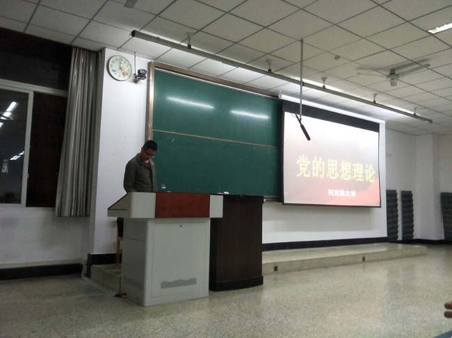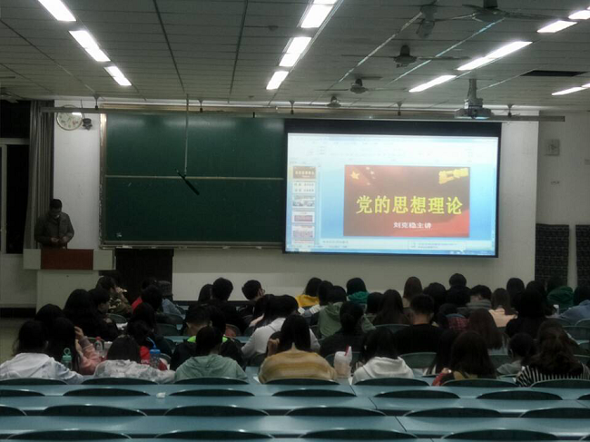 2018年10月21日晚经济与管理学院第三十八期党课培训第二讲在北校区行知楼201教室顺利进行。本次党课培训由刘克稳老师主讲。来自计科学院和经管学院的122名入党积极分子在刘克稳老师的讲解下,认真学习了第二专题“党的思想理论”。