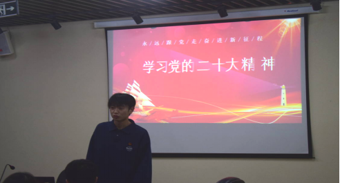 在学习过程中,同学们态度端正,认真学习讲话内容,切实领悟二十大精神。通过分团委副书记王瑞康耐心诚恳的讲解,切实提升了同学们的责任意识,奋斗意识等,促使讲话精神深入人心。