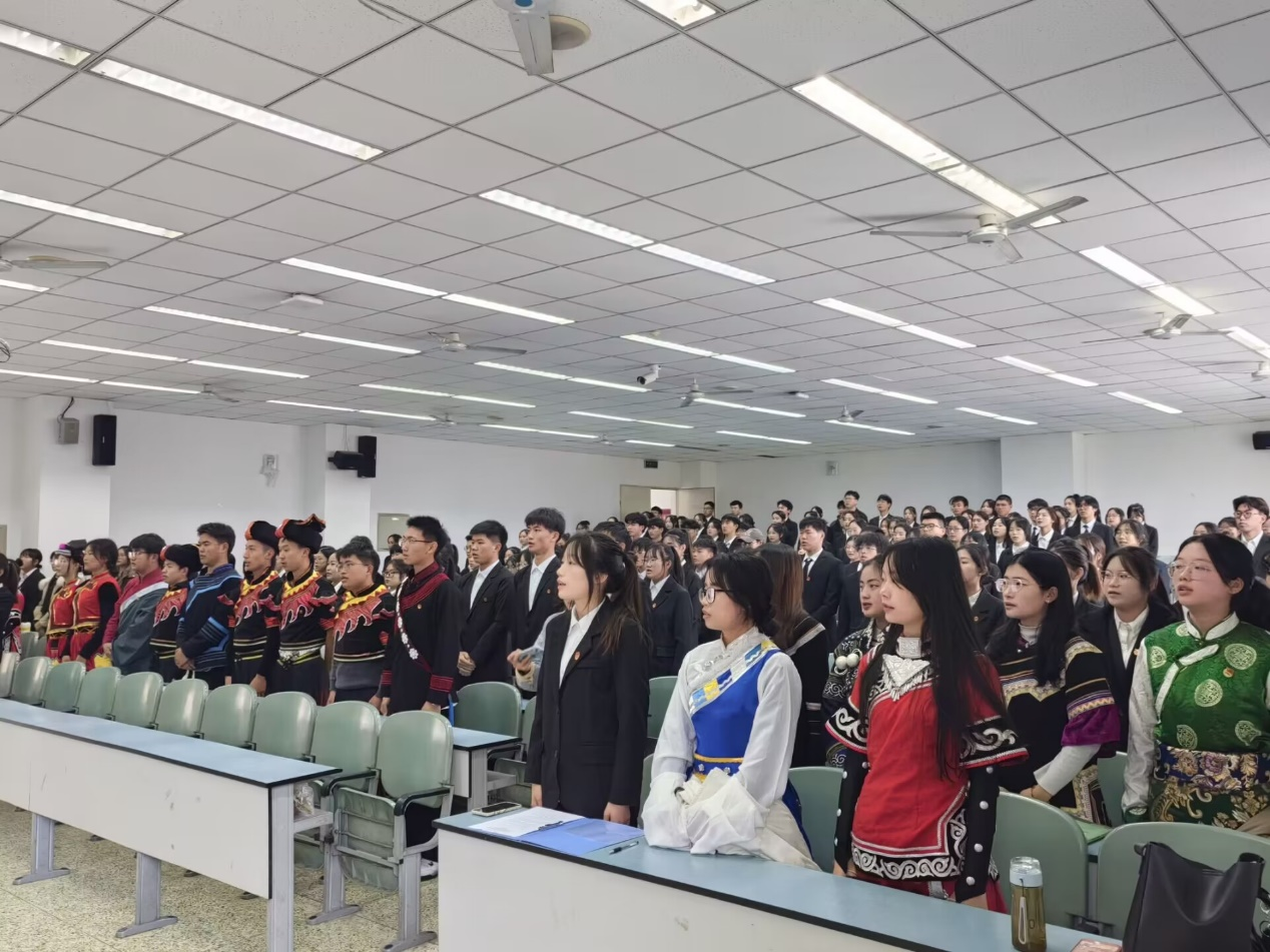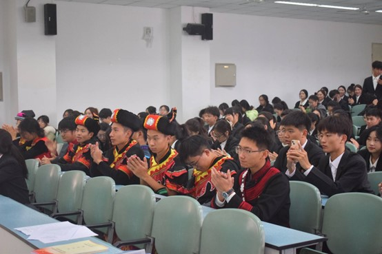 随后,丁敏娜书记发表了以“争做新时代优秀青年的领跑者”为主题的讲话。首先,丁敏娜对上一届团学干部的工作表现给予了高度肯定,并感谢他们在工作中的付出和努力,也对新当选的团学干部表示祝贺,号召新一届团学干部积极工作、守正创新,争取做出更好的成绩。接着,丁书记从工作思想、工作方法和工作态度三个方面,对在场的团学干部提出三点希望。她指出,在思想方面,同学们应主动用中国特色社会主义思想武装头脑,提升自我政治理论水平,并用以指导生活、学习与工作等多个方面,成为德、智、体、美、劳全面发展的新时代青年。在工作中,要充分了解团员、青年的实际需求,深入实践,增强团学工作的有效性。最后,呼吁团学干部做到四个“立”,即立志、立言、立信、立仁,发挥好团学干部的榜样示范作用。